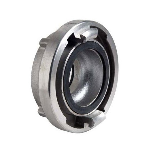 Storz koppeling NOK 66 met binnendraad, een draaibaar aansluitstuk maakt het door de draaibare nokkenring t.o.v. de binnendraad mogelijk om 2 vaste leidingen met elkaar te verbinden.